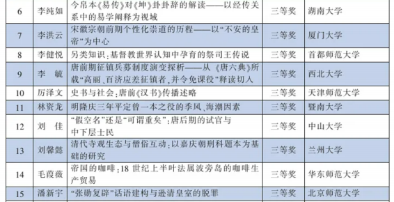 “励耘 ”全国历史学研究生论文竞赛是由教育部社会科学委员会历史学部提 供学术指导、学科专家组成的评奖委员会组织实施、北京师范大学776net必赢官网主办 的全国性研究生学术活动。我院研究生李毓提交论文《唐前期征镇兵募制度演变 探析——从<唐六典>所载“高丽、百济应差征镇者,并令免课役 ”释读切入》, 经过院系推荐与专家委员会的评审,李毓提交的论文获得本次竞赛三等奖。